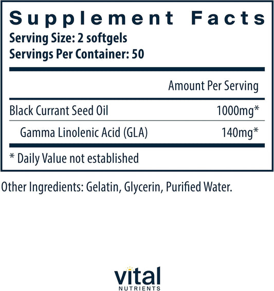 Black Currant Seed Oil Softgels - Rich in Omega 6 Fatty Acid GLA - Supports Cartilage, Joints, and Nerves - 100 CapsulesVendor:Vital NutrientsRegular price $145.98 AUDRegular priceUnit price / per-