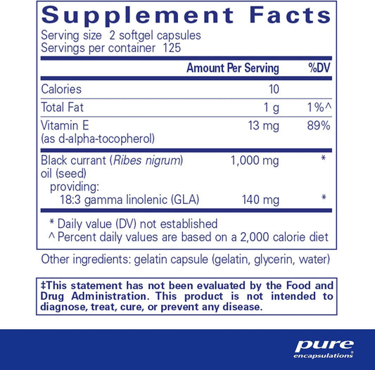 Pure Encapsulations Black Currant Seed Oil Softgel Capsules - 250 Count | Hypoallergenic Dietary SupplementVendor:Pure EncapsulationsRegular price $271.35 AUDRegular priceUnit price / per-