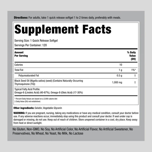 120 Count Black Seed Oil Softgel Capsules 1000mg - Cold Pressed Virgin, Non-GMO, Gluten Free - Piping Rock