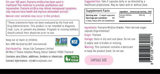 Organic Pueraria Mirifica Root Extract Capsules - Promotes Women's Health - Non GMO Vegan - Thai INCAS Herbal SupplementVendor:Incas by Asiya LifeRegular price $112.28 AUDRegular priceUnit price / per-