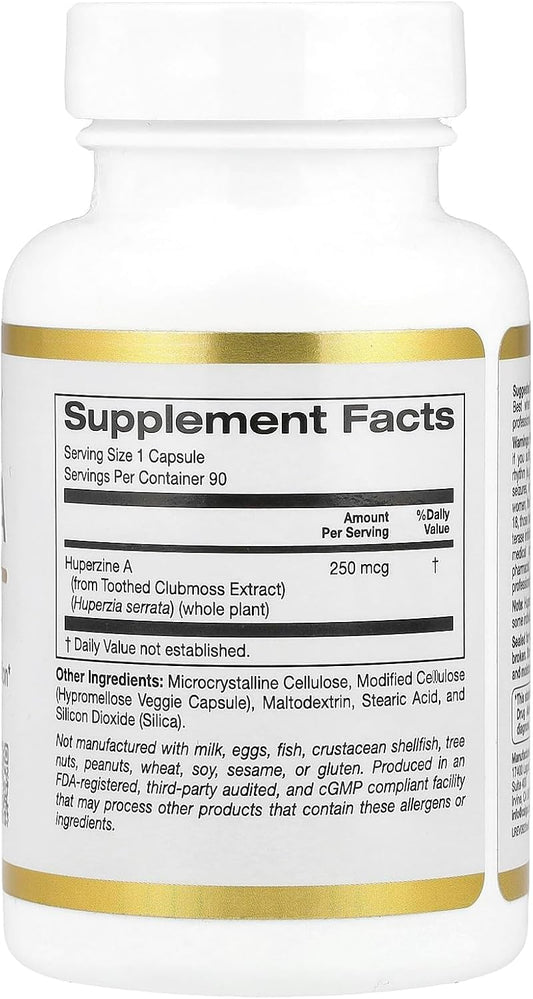 California Gold Nutrition Huperzine A Capsules - Memory & Cognitive Support - Vegan, Gluten-Free, Non-GMO - 250 mcg, 90 Count