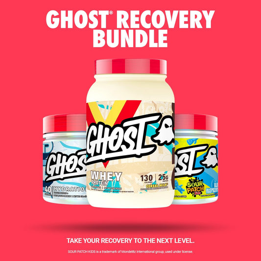 GHOST Supplement Bundle: Whey Protein (Cereal Milk), BCAA Amino Acids (Sour Patch Kids Blue Raspberry), Electrolyte Powder (Kiwi Strawberry)