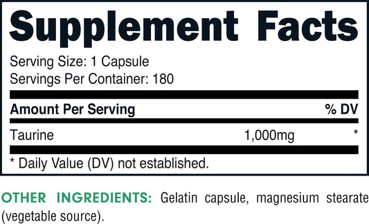 1500mg Taurine Supplement Capsules - Non-GMO & Gluten Free - 90 Count