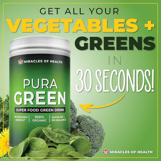 Organic Greens Herbal Supplement for Daily Nutrition and Energy Boost - Miracles of Health Pura Green Drink