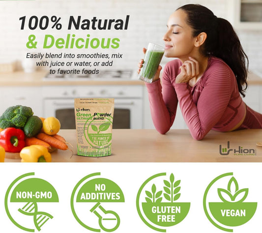 Premium Ultra-Pure Superfood Powder - Hion Green Powder Blend | 30 Servings | Vegan, Alkaline, Gluten-Free
