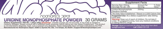 30g Nootropics Depot Uridine Monophosphate Powder - Disodium Salt for Cognitive & Mitochondrial HealthVendor:Nootropics DepotRegular price $124.63 AUDRegular priceUnit price / per-