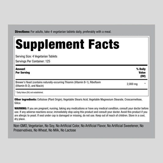 Brewer's Yeast Tablets 2000mg with B12 - 500 Pills, Vegetarian Non-GMO Supplement