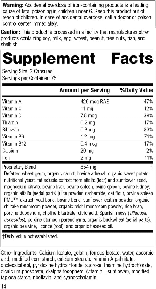 Whole Food Energy and Antioxidant Support Supplement with Iron - Standard Process Catalyn Capsules - Riboflavin, Vitamin B6, Thiamine, Wheat Germ, Vitamin A, Flaxseed Oil, Calcium - 150 Count