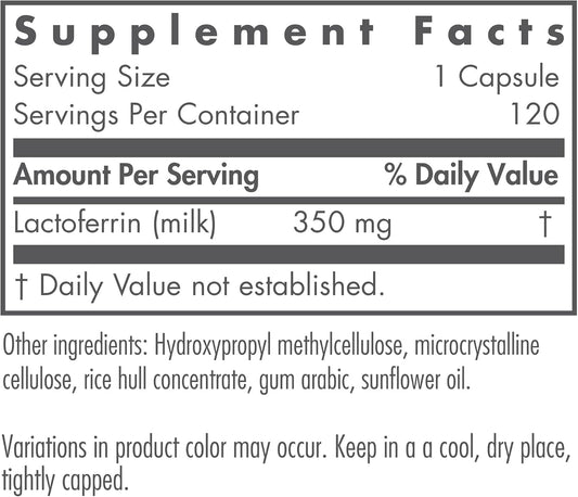 Nutricology Laktoferrin 350mg Supplement with Bovine Colostrum and Immune Peptide - Iron Support for Immune Health - 120 Vegicaps