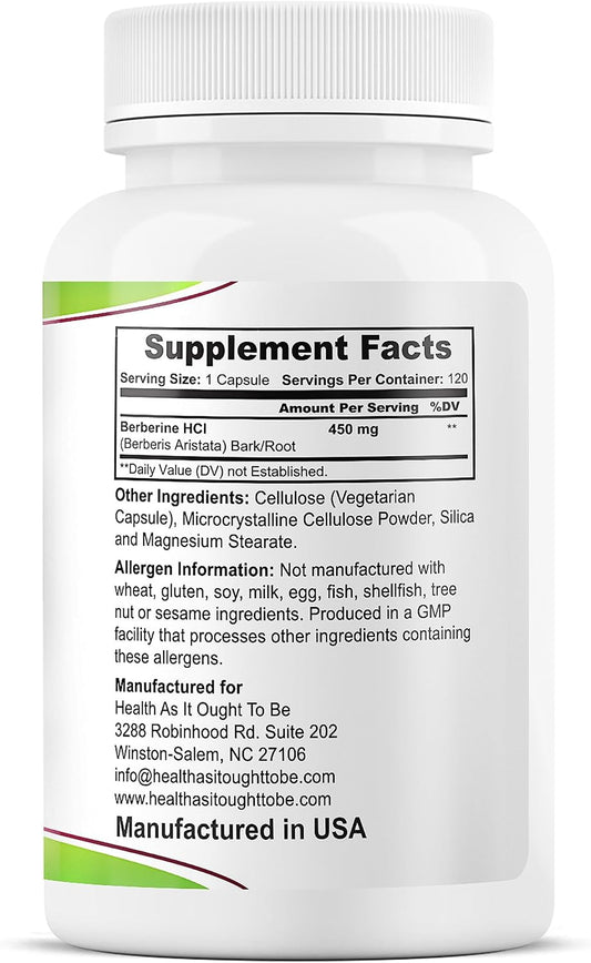 Pure Berberine 450mg Supplement | All-Natural Formula | 120 Capsules | No Additives