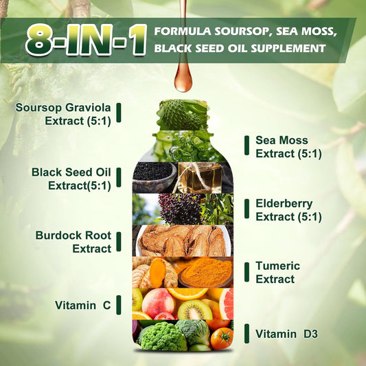Soursop Bitters Liquid Drops with Sea Moss Black Seed Oil - Antioxidant Support for Gut Cleanse, Detox & Immunity