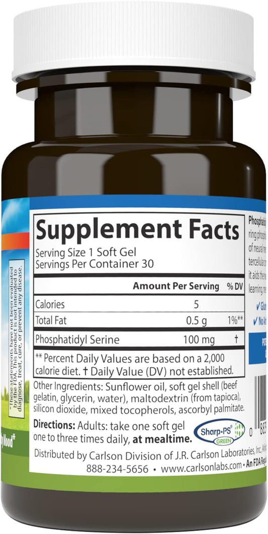 Carlson Phosphatidyl Serine Softgels - 100mg, Non-GMO Formula for Brain Function, 30 Count