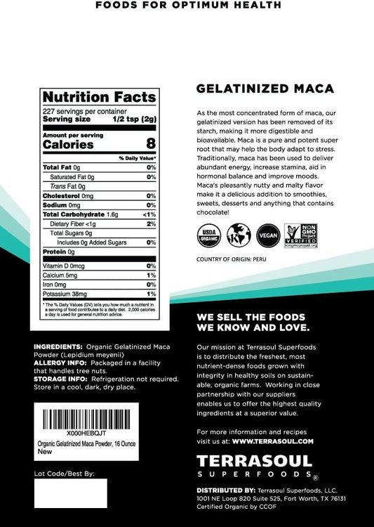 16 oz Terrasoul Superfoods Organic Gelatinized Maca Powder for Hormone Balance, Energy Boost, and Superfood Smoothies - Peruvian Maca Root for Easy Digestion