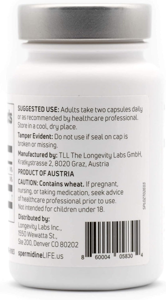 spermidineLIFE 800mg Natural Supplement with High Spermidine Content and Zinc, Plant-Based for Cell Renewal, Vegan, 60 Vegetarian Capsules - Pack of 2