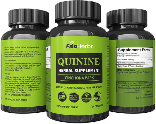 Vegan Quinine Capsules 1000mg - Cinchona Bark Supplement for Immune System, Stomach Health & Leg Cramps - FitoHerbs Herbal Supplement (90 Capsules)
