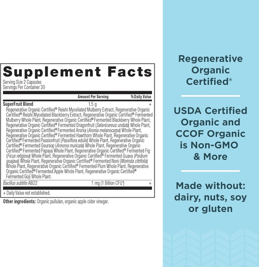 Regenerative Organic SuperFruits Capsules with Probiotics - Gut & Immune System Support - Dragonfruit, Mulberry, Goji - 60 Count