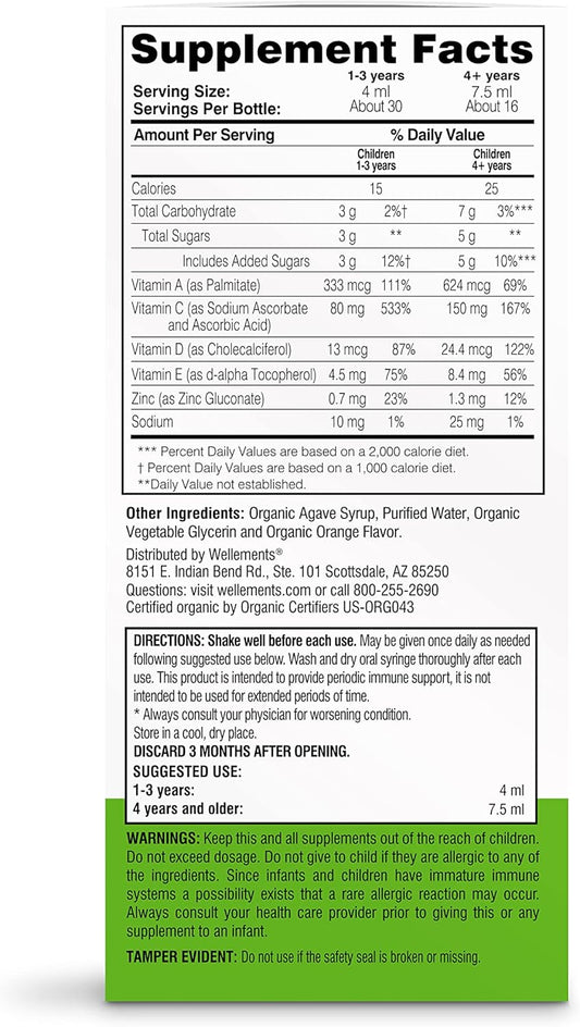 Organic Children's Immune Support Syrup with Vitamin C & Zinc - USDA Certified, Orange Flavor, Free from Allergens & Parabens, 4 fl oz