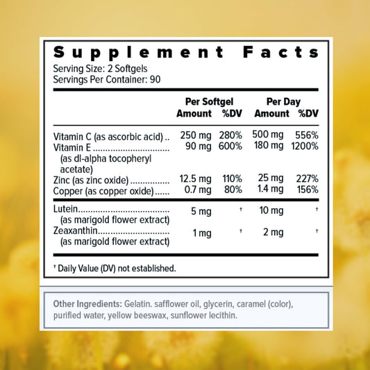 AREDS2 Based Eye Vitamin-Mineral Supplement without Soy - Low Zinc Formula - 180 ct. Eye Health Supplement for Vision Support