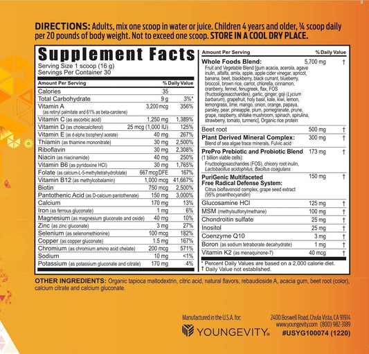 Youngevity Beyond Tangy Tangerine 2.5 Tropical Tangerine Ultimate Multi-Vitamin & Mineral Complex with Natural Whole Foods - 8,000 ORAC Value