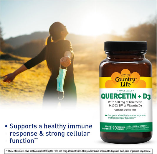 Country Life Quercetin 500mg Capsules with Vitamin D3 800 IU - Immune Support Supplement for Adults - 90 Capsules for Daily Immune Boosters