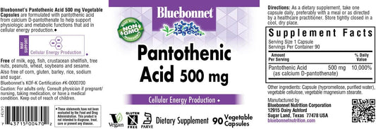 BlueBonnet 500 mg Pantothenic Acid Capsules - 90 Vegetable Capsules