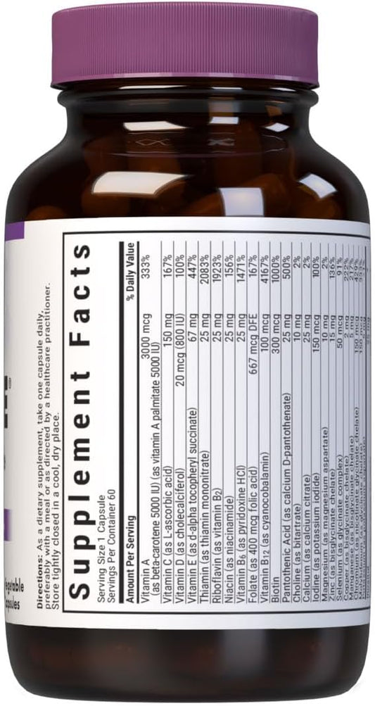 Bluebonnet Nutrition Multi One Vegetarian Capsules - Full Spectrum Multiple with B Vitamins for General Health - Iron Free, Gluten Free, Milk Free, Kosher - 60 Veg Caps, 2 Month Supply