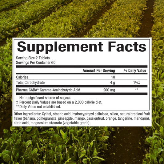 Natural Factors Stress-Relax Chewable Pharma GABA 100 mg Tablets - Tropical Fruit Flavor, Non-Drowsy Stress Support with Relaxation and Mental Focus - 120 Count