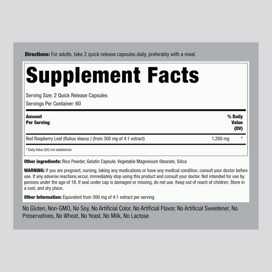 120 Red Raspberry Leaf Capsules - 1200mg Concentrated Extract - Non GMO, Gluten Free Supplement