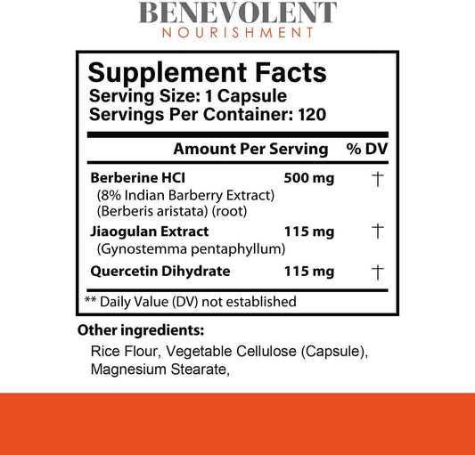 Premium Berberine HCL 730mg Capsules with Jiaogulan & Quercetin - 120 VCAPS Complex for Optimal Health