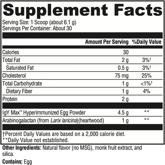 Vanilla Flavored Dairy-Free Immunoglobulin Powder with IgY Max for Intestinal Health and Muscle Recovery (6.46 oz)