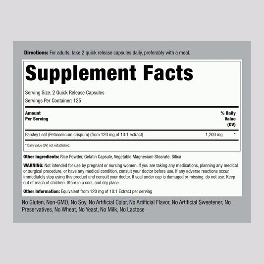 1200mg Parsley Leaf Capsules - 250 Pills, Herbal Extract, Non GMO & Gluten Free Supplement