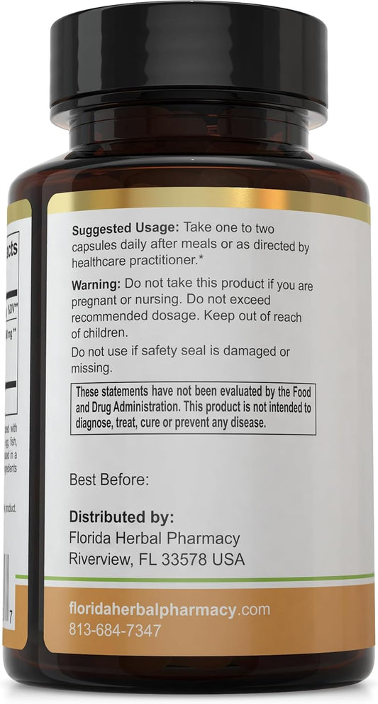 Florida Herbal Pharmacy Pao Pereira Bark Extract Capsules 500mg - 120 Capsules - 10:1 Extract Ratio - 1000mg Serving Size