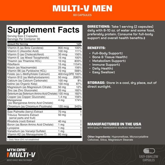 MTN OPS Multi-V Men's Vegetarian Multivitamin Capsules - Daily Essential Vitamin Complex (60 Capsules)