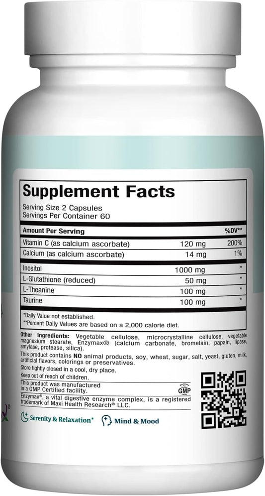 Maxi Health Stress Relief Formula Capsules - Natural Mood and Relaxation Supplements with Vitamin C, Calcium, L-Theanine, L-Taurine, and Amino Acids (120 Count)