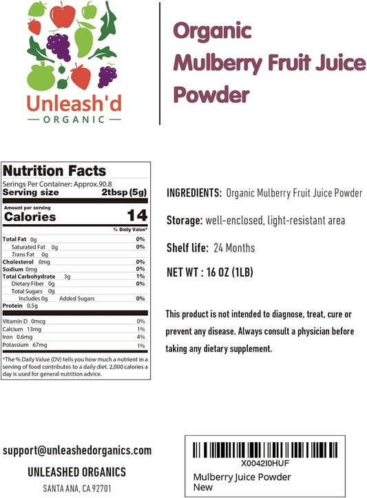 100% Pure Organic Mulberry Juice Powder - 16 oz - Supports Liver & Kidney - Rich in Vitamins - Green Superfood
