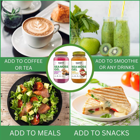 Organic Raw Sea Moss Gel Bundle - Apple Cinnamon & Elderberry Ginger Flavors - 24oz Jars (2 Pack) - Wildcrafted Gold Sea Moss Gel from Saint Lucia - Vegan Superfood with 92 Vitamins & Minerals