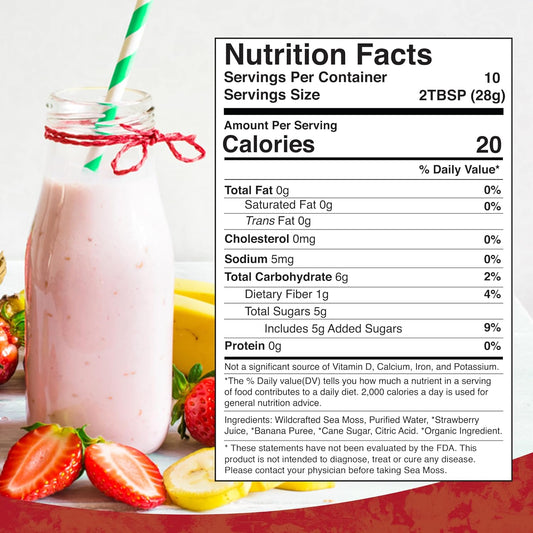Organic Raw Irish Sea Moss Gel with Strawberry Banana Flavor - Vitamin and Mineral-Rich Superfood for Immune and Digestive Health - 10 oz.