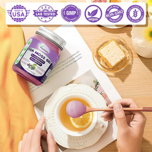 Wildcrafted Elderberry Flavor Sea Moss Gel - 15 OZ | Organic Raw Non-GMO Irish Sea Moss Gel for Thyroid & Digestive Support