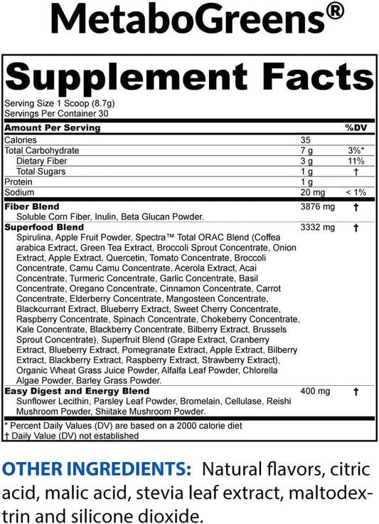 BioTrust Metabo Greens Superfood Powder - Energizing Berry Flavor, Clinically Studied Spectra Blend - Non GMO, Soy Free, Gluten Free, Dairy Free - 30 Servings