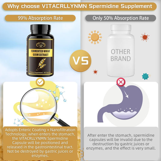 Highly Potent Spermidine Supplement Capsules with Wheat Germ Extract - 1000mg Formula Boosted with Zinc for Cell Renewal, Antioxidant Support, and Energy - 360 Capsules (6 Bottles)