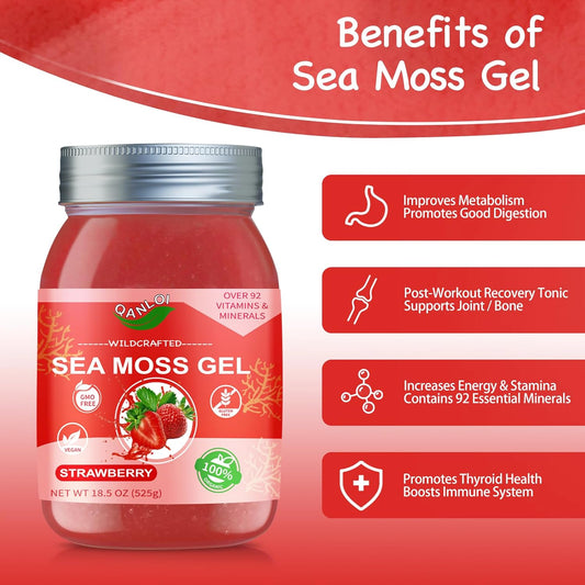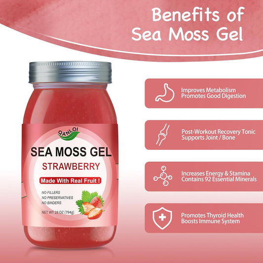 Organic 18.5OZ Strawberry Sea Moss Gel - Rich in 92 Vitamins and Minerals - Sea Moss Supplement for Health