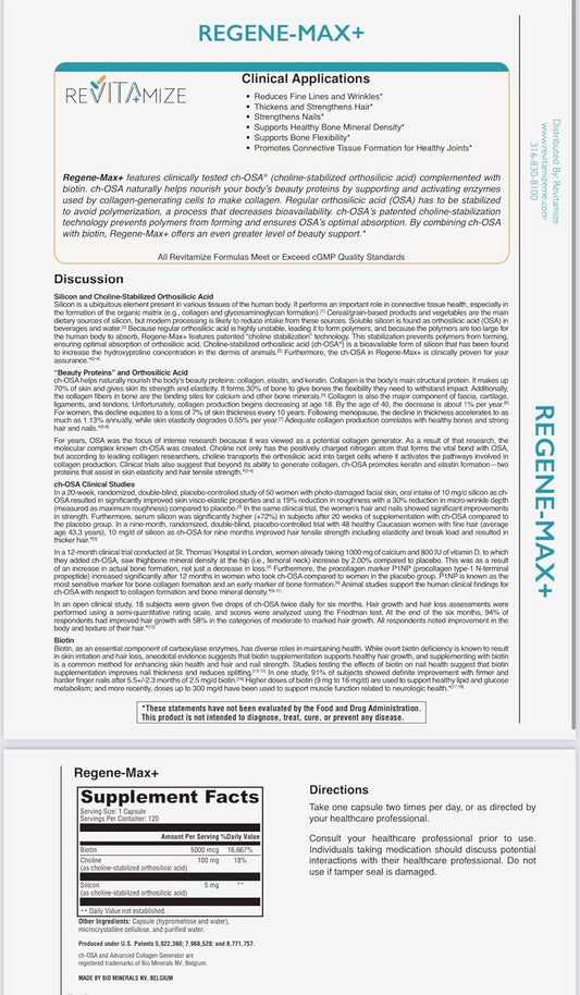 Regene-MAX+ Biotin Supplement for Hair, Skin, and Nails. Enhance Collagen Production, Reduce Fine Lines and Wrinkles
