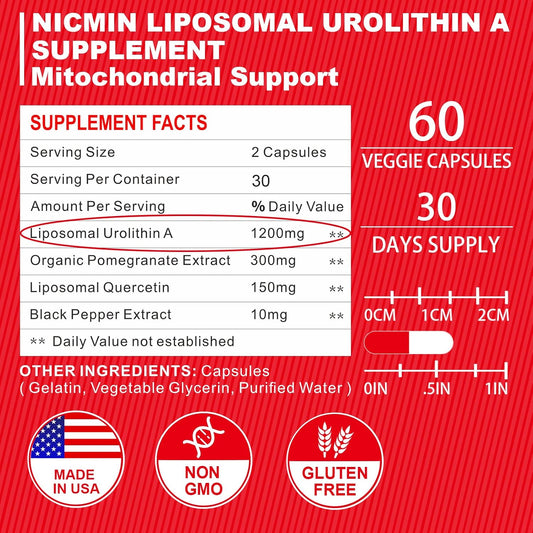 1660MG Liposomal Urolithin A Supplement - 120 Capsules by NICMIN