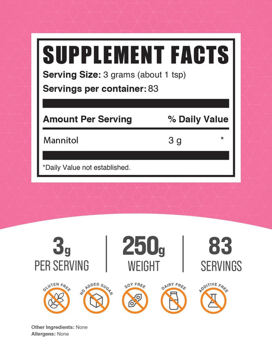 BulkSupplements.com Mannitol Powder - Natural Gluten-Free Sweetener and Supplement - 250g (8.8 oz) Pack of 1 - 3g per Serving