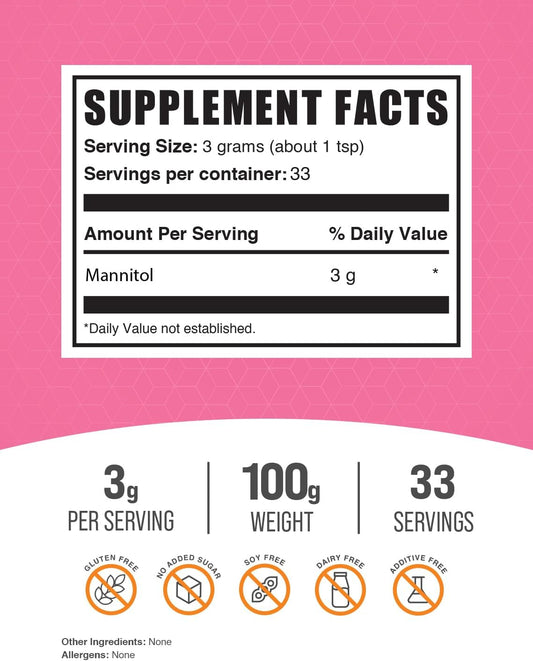 BulkSupplements.com Mannitol Powder - Natural Gluten-Free Sugar Substitute, 100g (3.5 oz) - Pack of 1 - Mannitol Sweetener Supplement