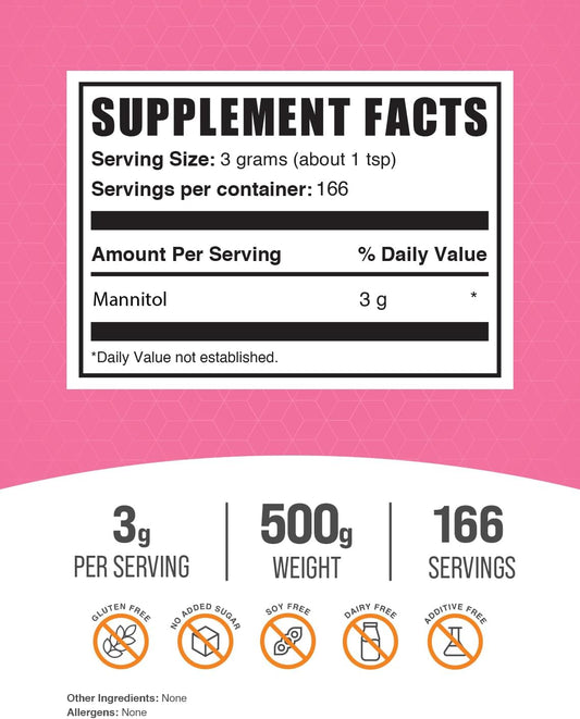 BulkSupplements.com Mannitol Powder - Natural Sweetener and Sugar Substitute, Gluten-Free Supplement, 500g (1.1 lbs) - Pack of 1
