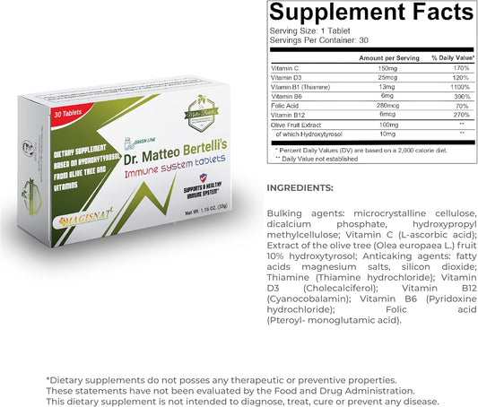 Immune System Support Supplement with Hydroxytyrosol and Vitamins - 30 Tablets by Dr. Matteo Bertelli