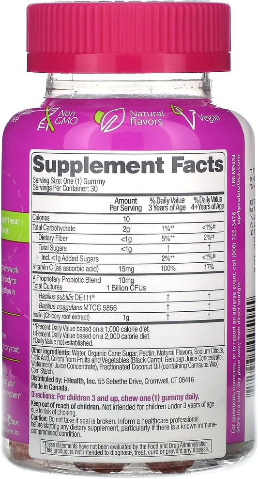 Kids Probiotic Gummies for Digestive & Immune Support with Prebiotics, Vitamin C - Gelatin & Gluten Free, Non-GMO - 30 Count