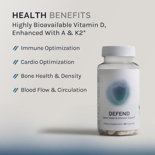 60 Capsules of InfiniWell Defend Pro: Bone, Heart & Immune Support - Vitamin A, D3, K2 for Cardiovascular & Immune Health - 60 Day Supply