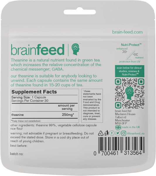 Natural L Theanine Capsules - 250mg Isolated Powder from Green Tea | GABA Support for Relaxation | Vegan - 30 Capsules
